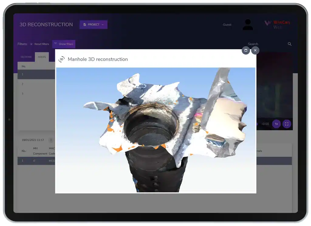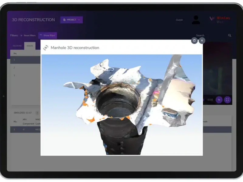1. Vi använder oss av Quickview 360 som är en modern brunnscanner vilken både kan generera 3D-modeller och CAD-ritningar. Den placeras ovanför brunnen och sänks sedan ner med hjälp av en handkontroll.